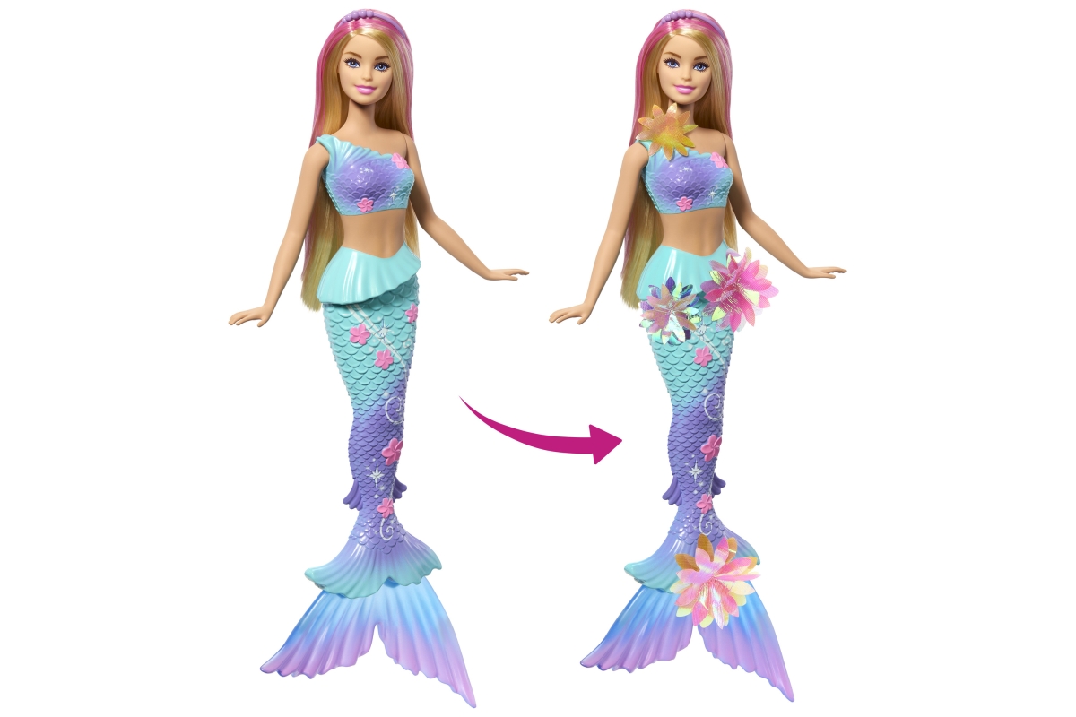 Zažijte zábavu s panenkou Barbie! Posunutím páčky na jejích zádech uvidíte, jak jí květiny kouzelně "rozkvétají" od živůtku až po její ploutve, a to pořád dokola. Děti si s ní mohou hrát na souši i pod vodou, aby se jim na slunci nebo v moři naskytla nádherná přehlídka květů. S duhovými květy, ombré ploutvemi a doplňkem v podobě perlové čelenky v dlouhých blond vlasech s růžovým melírem - tato panenka Barbie mořská panna je naprosto okouzlující! Panenka nemůže stát ani plavat sama. Barvy a vzhled výrobku se mohou lišit. Věk 3+