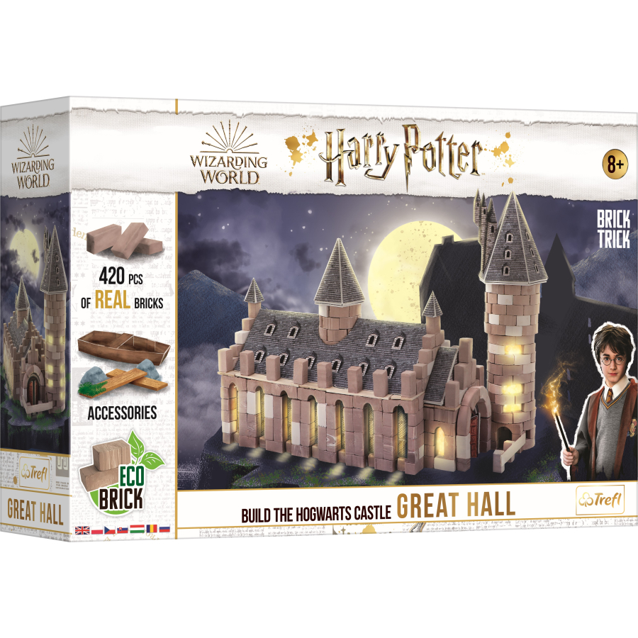 Vybudujte od základů nejslavnější budovy z knih a filmů Harry Potter ze skutečných hliněných cihel a dřeva! S XL stavebnicí TREFL Brick Trick si budete hrát celé hodiny. Skládejte cihlu za cihlou, řežte a lepte prkénka, postupujte od základů až po dokončenou budovu a nakonec svůj výtvor ozdobte přiloženými dekoracemi. Přidejte trávu, mech či kameny a dodejte Škole čar a kouzel v Bradavicích jedinečnou atmosféru. Všechny produkty ze série Brick Trick – Harry Potter obsahují nejméně 96% přírodních materiálů. Stavebnici lze používat opakovaně (lepidlo je rozpustitelné vodou).