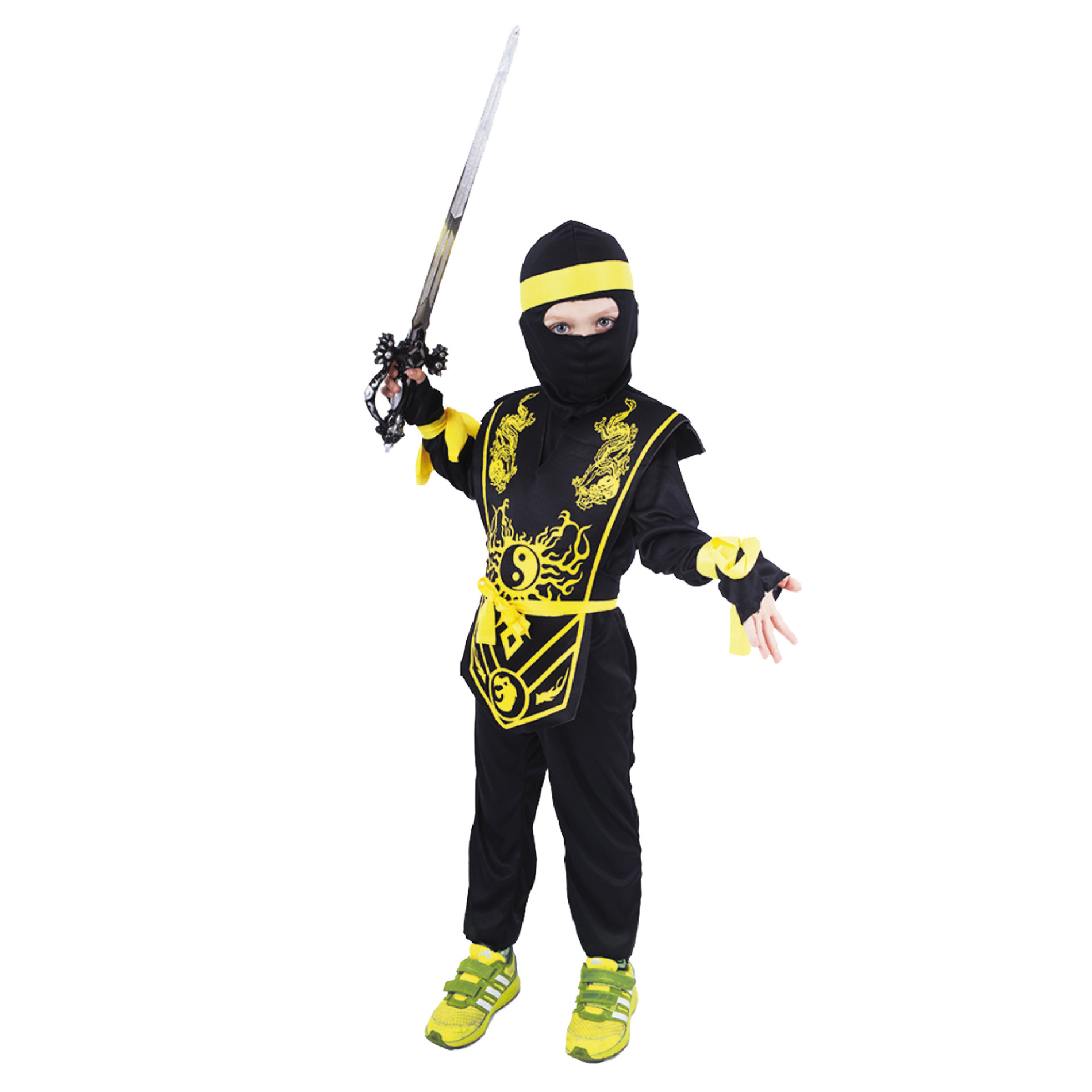 Karnevalový kostým NINJA ve velikosti M je určen pro chlapce ve věkovém rozmezí 6-8 let (116-128 cm). Balení obsahuje overal, vestu zdobenou žlutými bojovnými motivy, kuklu, čelenku, opasek a pásky na ruku. Nejen letos je potřeba myslet EKO-nomicky i EKO-logicky! EKO-balení je vhodné zejména pro e-shopy kde zákazník nakupuje dle fotografie a není třeba velkého balení s věšákem. EKO-logicky – na balení bylo použito méně plastu a dalších materiálů. Jedná se o malý transparentní obal s fotografií. EKO-nomicky –EKO-obal zabere jen polovinu místa – šetřete skladová místa s námi!