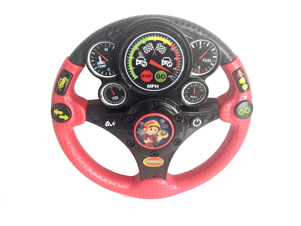Dětský volant pro děti se zvukovými efekty a písničkami. Volant mluví český napr. slova: Zastav! Připrav se a jeď! Dvě vtipné originální české písničky.