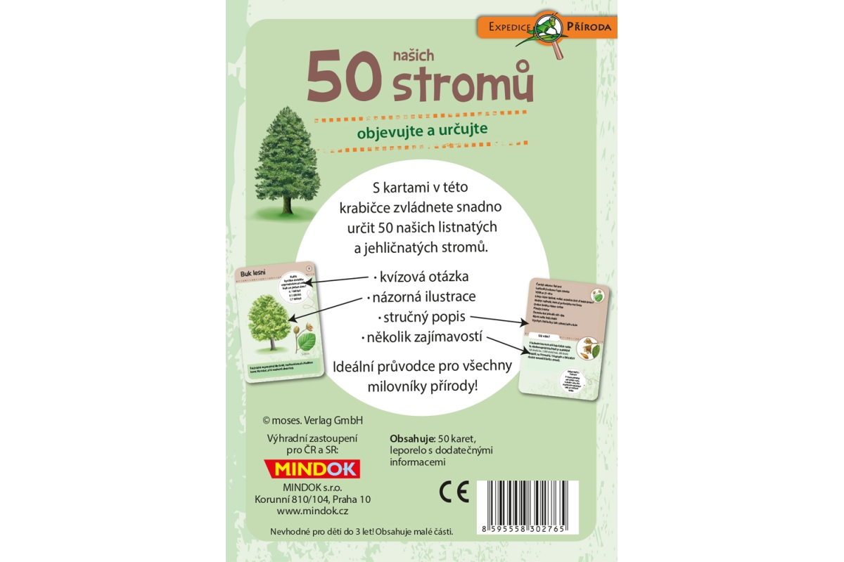 S kartami v této hře zvládnete snadno určit 50 našich listnatých a jehličnatých stromů. Na kartách najdete kvízovou otázku, názornou ilustraci, stručný popis a několik zajímavostí. Ideální průvodce pro všechny milovníky přírody! Věk 6+