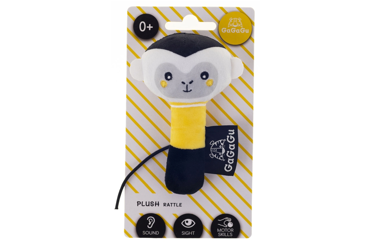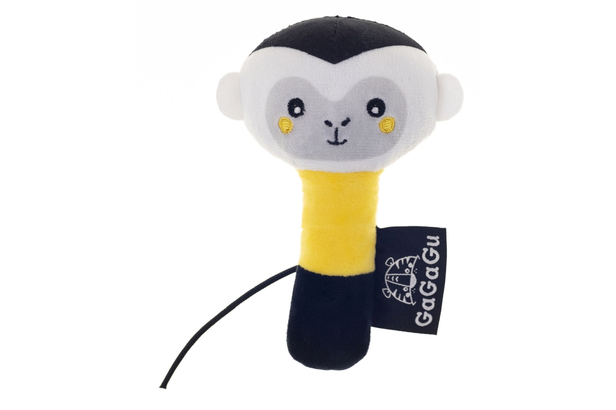 Chrastítko GAGAGU s opičkou je ideální hračkou pro nejmenší děti. Jeho zajímavý design a barvy v odstínech bílé, žluté a černé přitahují pozornost a probouzejí zvědavost batolat. Díky použití bezpečných materiálů je chrastítko zcela bezpečné pro děti od prvního dne života.Hračka byla navržena tak, aby podporovala rozvoj motorických dovedností dítěte, a její tvar a textura ji předurčují k uchopení. Měkký, na dotek příjemný plyš dělá chrastítko nejen funkčním, ale i pohodlným na hraní. Věk 0+