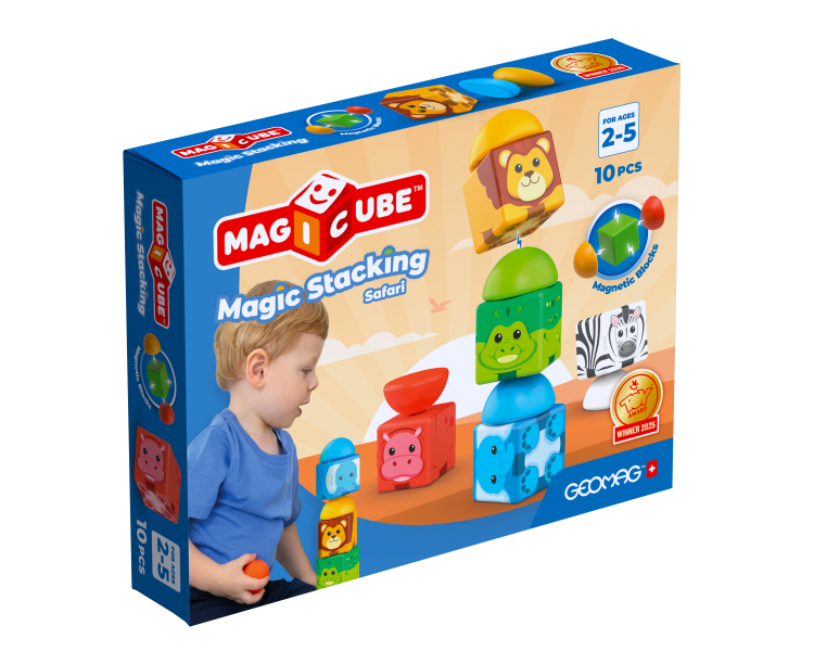 Novinka Geomag Magicube Safari se stala na hračkářském veletrhu v Norimberku vítězem v kategorii Baby&Infant 2025. Obsahuje 5 magnetických krychliček s motivy zvířátek a 5 magnetických polokoulí v pěti různých barvách, celkem 10 dílků. Vytvořte si vlastní krajinu se zvířátky, kterou můžete doplnit jakoukoliv další stavebnicí z řady Magicube. Vhodné od 2 let, vyrobeno ve Švýcarsku.