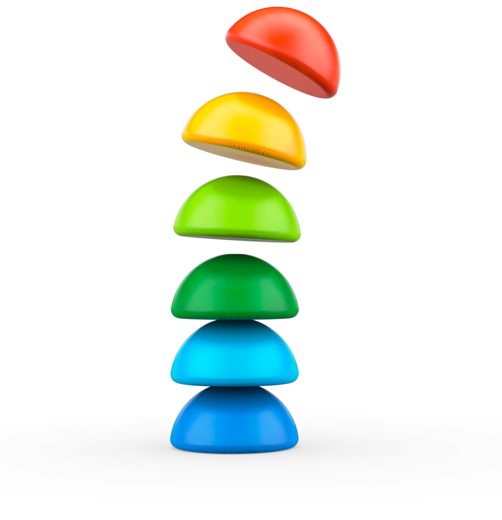 Stavění věží baví i malá miminka. Obsahuje šest magnetických polokoulí v šesti barvách. Vhodné od 1 roku.