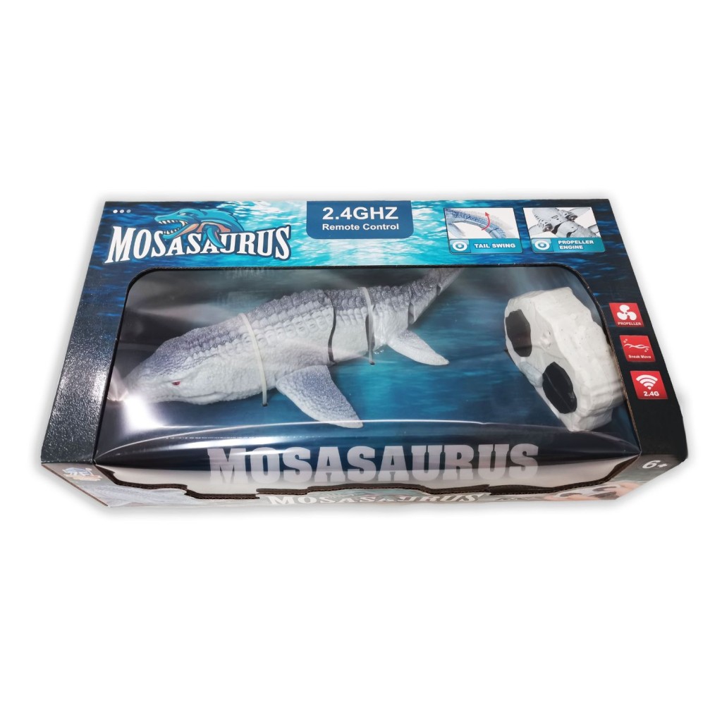 Obojživelný ještěr Mosasaurus na dálkové ovládání, který vypadá, leze i plave jako opravdový. Ještěr se pohybuje vpřed, do stran, na souši i ve vodě, má pohyblivý ocas. Hračka obsahuje dobíjecí baterii 3,7V 500mah, ovladač vyžaduje 3× AAA baterii, není součástí. Frekvence 2413–2470 Mhz, frekvenční pásmo 3dbm. Dosah ovladače až 20 metrů. Vhodné pro děti od 6ti let.