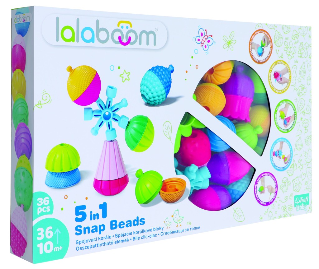 Korálkové bloky se dají navzájem spojovat tak, že se zacvakne jeden blok do druhého. Spojovací korálkové bloky lze rozkládat a skládat. Lze je libovolně kombinovat, a tak vytvářet různorodé barevné konstrukce. Jediným ohraničením je vlastní představivost! Vhodné pro děti 10–36 měsíců. Sada obsahuje: 30 dílů určených pro skládání, 2 okvětní lístky, 2 spojky, 2 provázky pro navlékání.
