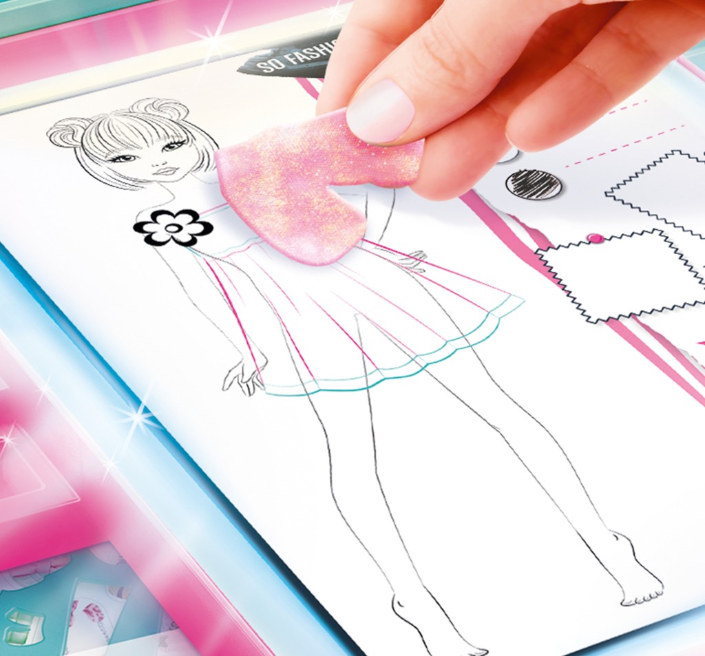 Novinka Style4Ever Návrhářské módní studio Light-up s podsvícenou podložkou vám přinese hodiny tvořivé zábavy. Splňte si sen a vytvořte návrhy jako módní návrhář. V balení naleznete návrhářské módní studio včetně podsvícené položky, 20 modelů, 1 oboustranný fix, sáš´ček s 25 kamínky, lepidlo, 4 barevné tužky, 6 potištěných roliček, 12 potištěných archů, 3 samolepící archy látek, 2 archy šablon, 3 archy obresových šablon, 2 archy nálepek. Výrobek vyžaduje 3× AAA 1,5V baterie, které nejsou součástí. Vhodné pro děti od 6ti let.