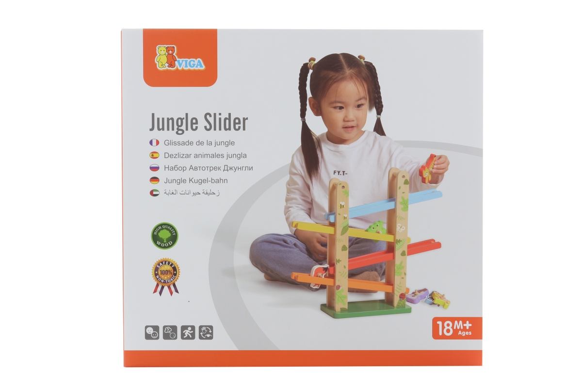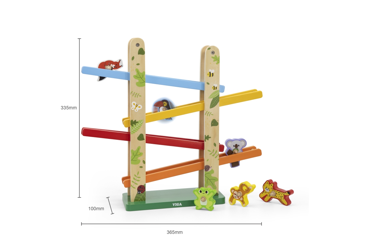 Tato barevná skluzavka od značky VIGA obsahuje 6 roztomilých zvířátek přímo z džungle. Umístěte zvířata na vrchol a sledujte, jak se točí po rampě dolů. Rozměr balení cca 37 x 34,5 x 11. Věk 18m+