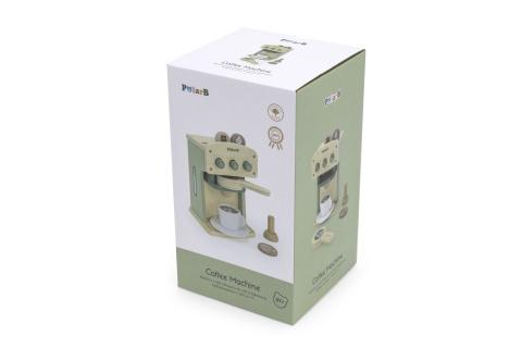 řevěný kávovar s příslušenstvím. Balení obsahuje kávovar, páku, hrneček, podšálek a 4 kolečka s obrázkem druhu kávy.Rozměry kávovaru 12,5x12,5x19,5 cm.Rozměry balení cca 13x13x23 cm.Věk 3+