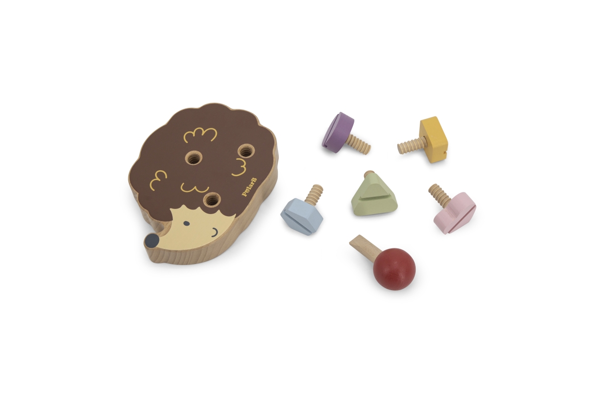 Dřevěný šroubovací ježek. Balní obsahuje ježka a 6 šroubků s tvary. Rozměry 15x39x13 cm. Rozměry balení cca 21,5x16,5x5 cm. Věk 18m+