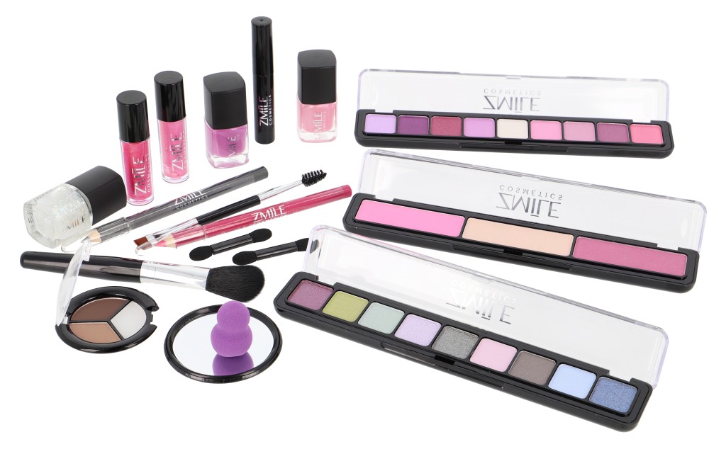 Kosmetický kufřík hliníkovými rámem Marry Berry s integrovaným zrcátkem – celkem 38 ks příslušenství. Obsahuje 18× očními stíny ,2× tvářenku, 1× zvýrazňovač,1× vosk na obočí, 2× lesk na rty, 3× lak na nehty, 1× řasenka, 1× tužku na oči, 1× tužku na rty, 2× oboustranný aplikátor na stíny, 1× oboustranný aplikátor na obočí, 1× štětec na tvářenku, 1× kulaté zrcátko a 1× mini houbičku na maku up. Dermatologicky testováno, vyhovuje přísným normám EU.